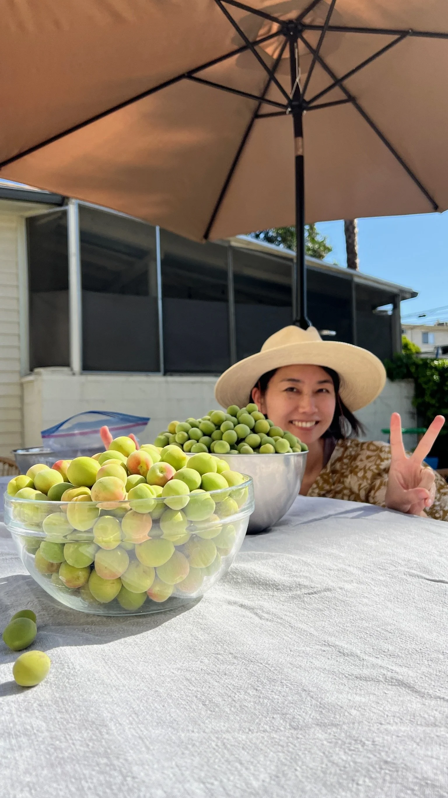 Have you had umeboshi before? It’s intensely sour but packed with health benefits. Umeboshi is salt-pickled ume, a Japanese fruit often called “Japanese apricot,” though botanically it’s closer to a plum. I live in Los Angeles, and it’s not too difficult to find ume. You’ll start seeing them around May in Japanese grocery stores, often displayed alongside rock sugar, large jars, and white liquor—hinting at making umeshu (plum wine). When ume is ripe, it releases a beautiful fragrance that’s sweet with subtle citrusy notes. The skin turns a pinkish yellow, which is the perfect stage for making umeboshi. My ume was given to me by my friend Sean—he knows a farmer who grows them. Thank you, Sean!