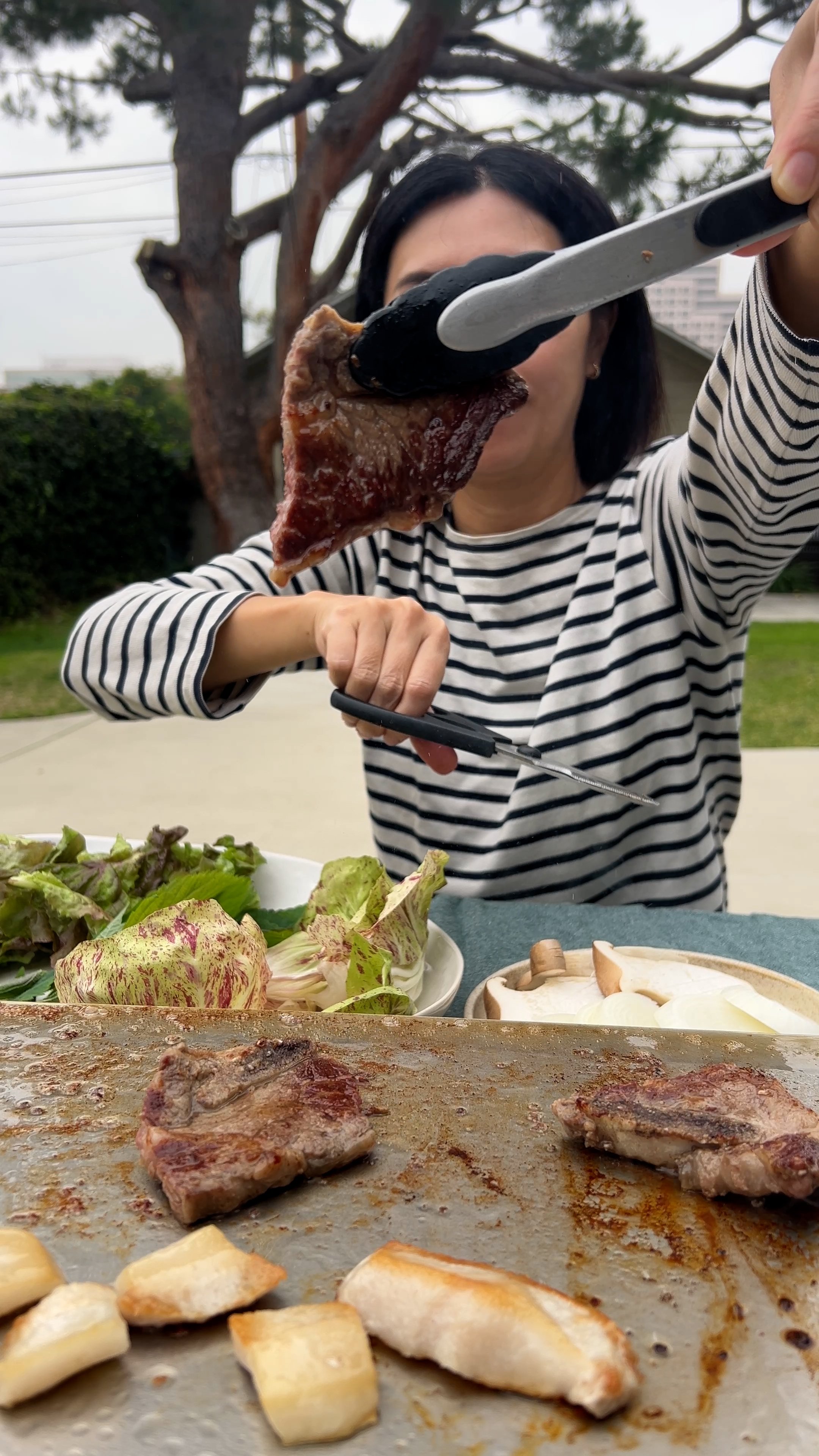 One final tip, just like at KBBQ restaurants, use kitchen scissors to cut the meat into bite size pieces right on the grill..