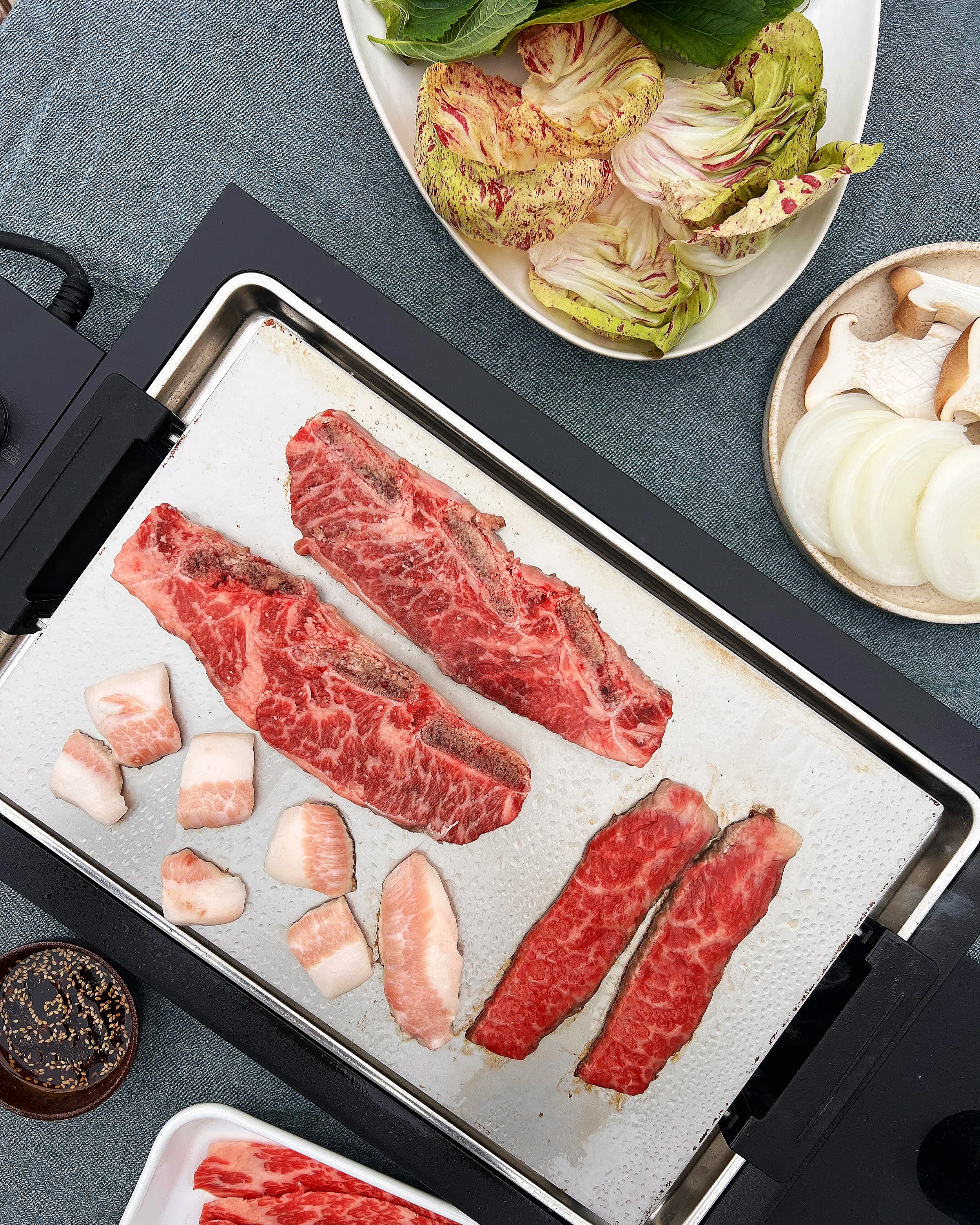 I love my Balmuda teppanyaki, but if you do not own a hot plate, a portable gas stove with a cast iron pan works perfectly. That is how I hosted BBQ before I had the teppanyaki grill.
